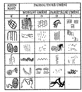 Pozn.: Parientální umění doslova znamená umění nástěnné, termín mobilní umění zahrnuje různorodé přenosné předměty (vrhače oštěpů, hliněné sošky typu "Venuše").