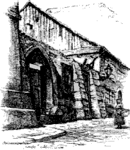 2. Kresba právovárečnického domu s typickými právovárečnickými vraty v Malé ulici v Plzni