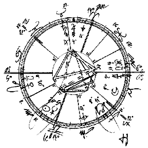 Tvar horoskopu je sice poněkud disharmonický, zato v něm nalezneme ohnisko v podobě Jupitera a Saturna, k nimž vede sada symetrických aspektů z východu i ze západu. Jsou to navíc poslední okamžiky Plutónova pobytu na osmém stupni Střelce, k němuž se v sabiánském symbolismu vztahuje obraz nových prvků, které se formují v hlubinách země. Pluto tu rozdmýchává alchymický oheň, který čistí i transformuje samu substanci lidského vnitřního života. Dane Rudhyar mluví o tom, že "v nejhlubších vrstvách psyché pracují síly, které po svém reagují na vnější podněty, pocházející z intenzivního zapojení do skupinových ambicí a emocí, a ještě více na ty, pocházející z mocných tlaků a vzplanutí lásky. Alchymický proces pokračuje, obvykle nepovšimnut vědomým ego, dokud se neukáže, že došlo k určité mutaci a že bylo dosaženo nového stupně uvědomění a reakcí na život. Jedná se zde jak o základní rytmus růstu lidské bytosti, tak o reakci na individuálnějsí prožitky, které probouzejí emoce. Sama podstata přirozenosti jedince prochází změnami, na jejichž základě je možno učinit další krok. Tento symbol zaměřuje naši pozornost k těmto vnitřním změnám. Máme si je začít uvědomovat. Symbol implikuje určitý druh nošení psychického plodu."
