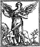 Okřídlený chlapec v červenožlutém hávu. Tyto barvy symbolizují touhu. Křídla představují rozohněnou duši, která překotně utíká k nebeským myšlenkám. Jeho hruď doutná ohnivým plamenem, který je totožný s oním plamenem, který Ježíš Kristus přinesl na zem.